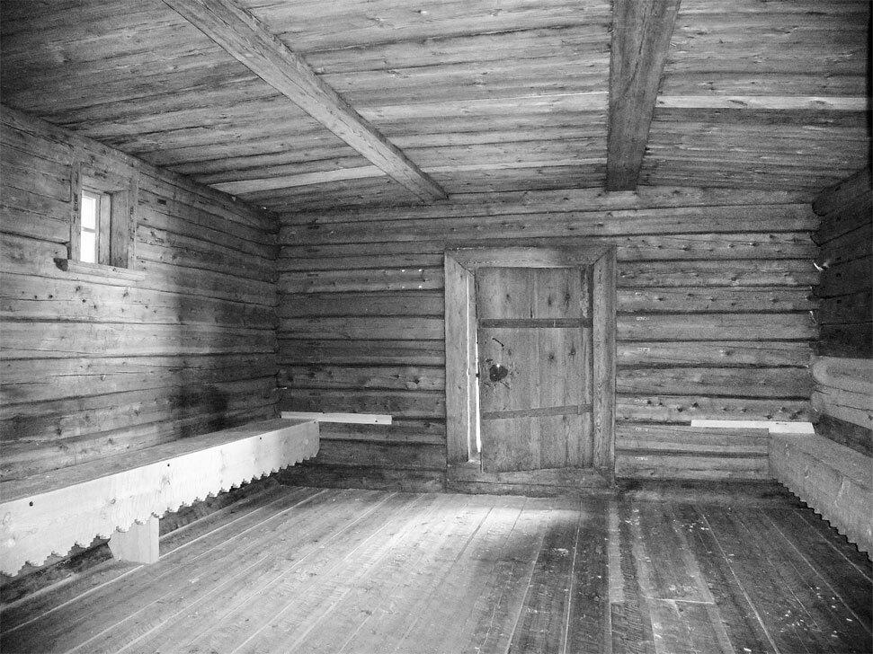 Основною ячейкой древнерусского деревянного зодчества является «клеть» – четырехугольный бревенчатый сруб. Основные размеры этого сруба определила сама природа: строевое дерево длиннее 3–4 сажен встречалось редко, а вертикальные опоры, врубка бревен в столбы, в древнерусском зодчестве почти не применялась, вероятно, в силу недостаточной прочности материала – сосновых и еловых бревен. Таким образом, клеть могла занимать пространство от 9 до 16 кв. сажен[2]. Первоначально клеть крылась без потолков, как древнехристианские церкви, – двускатною крышей. В клети, предназначенной для зимнего жилья, ставилась печь, но без труб: дым выходил в подъемное «волоковое» окно.