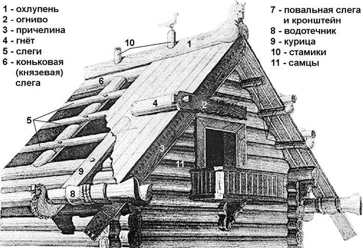 Замысловатые формы крыш вызвали и особые способы их покрытия небольшими и тонкими дощечками, более удобными для выгибания по контурам бочечных пучин, чем обыкновенные доски. Покрытие из дощечек, закругленных на концах, называлось «чешуей», а из заостренных – «лемехом» или «гонтом».
