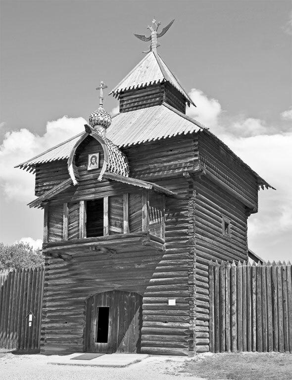 Башня навесной часовенке над входом Илимского острога (Иркутская обл.). 1667 г.