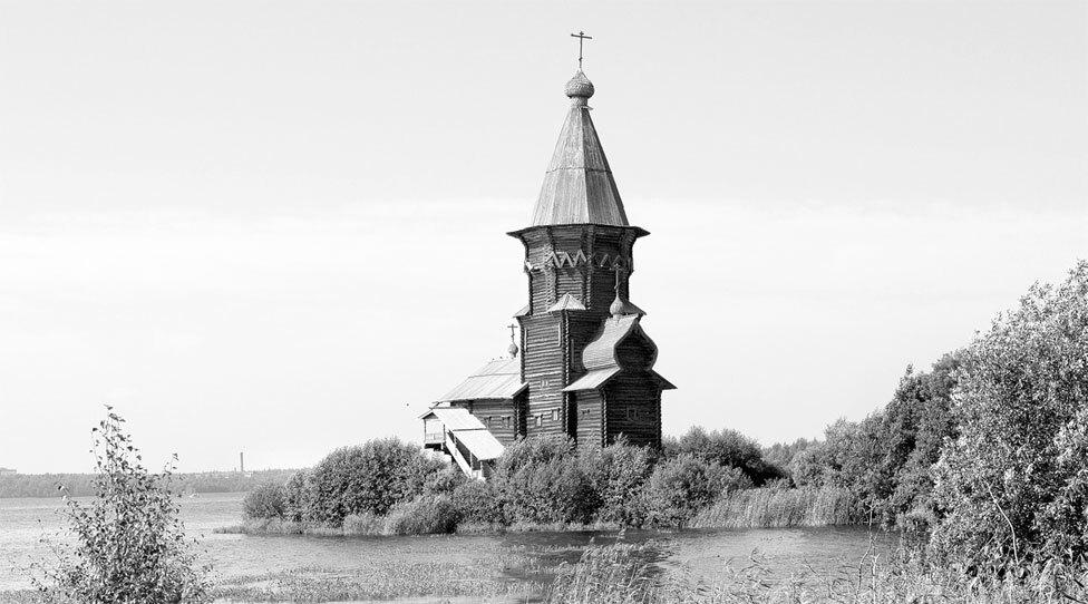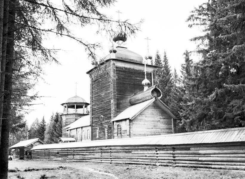 Ильинский Водлозерский погост (Карелия). 1798 г. Сочетание поонежских (кубоватое завершение) и прионежских (бочка над алтарем, соединение храма и колокольни переходом в сочетании с крыльцами) традиций