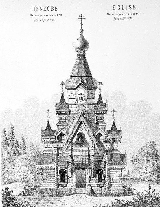 Как постепенно развивался тип барских хором, так же постепенно должен был развиваться и тип храма – «Божьих хором». Первые, небогатые деревянные храмы, по плотничьему выражению, «ставились клетски», т. е. в виде привычной клети.