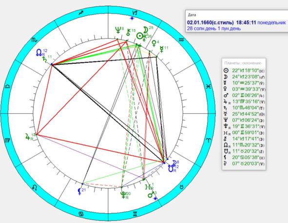 Рис. 2. Карта на 2 января 1660 г. ст. ст. подтверждает дату календаря. В календаре на 2 января указано новолуние, день недели понедельник.