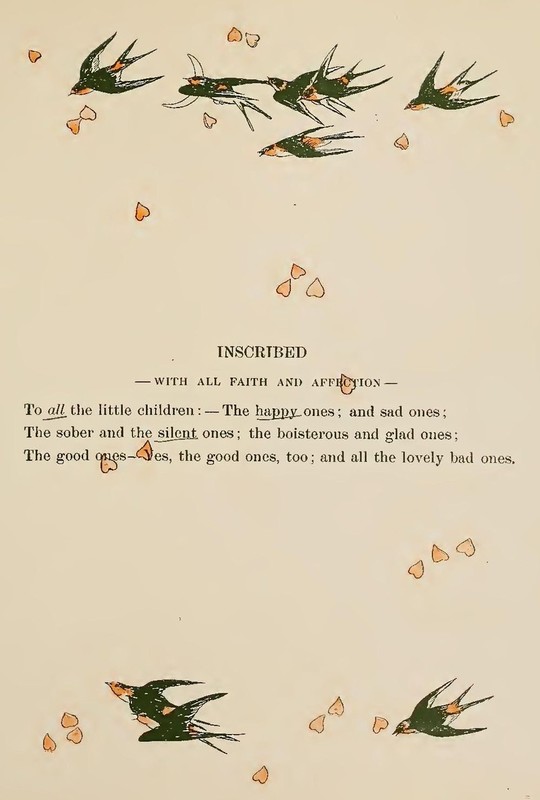 An' shoo the chickens off the porch, an' dust the hearth, an' sweep,