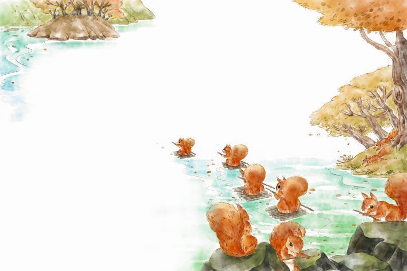 В лапках у каждого бельчонка было по веслу, а распушённые хвосты служили им парусами.