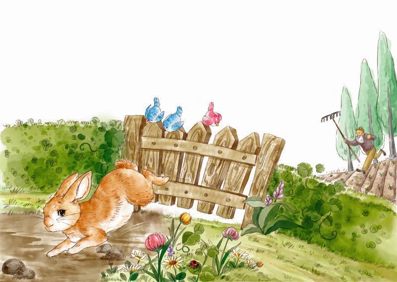 – Ну, детки дорогие, можете погулять в поле или побегать в переулочке вдоль живой изгороди. Но только не вздумайте подходить к огороду мистера Мак-Грегора! С папой ведь там и случилось несчастье: он угодил в пирог, который пекла миссис Мак-Грегор. А теперь бегите, да глядите не попадите в беду. А мне нужно идти по делам.