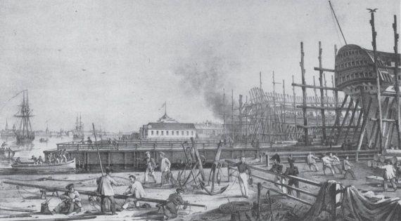 Петровское Адмиралтейство строилось и совершенствовалось на протяжении долгого времени. Оно стало ядром застройки всего левого берега Невы, получившего название сперва Адмиралтейского острова, а затем Адмиралтейской стороны, части города: она росла и формировалась как единое целое с Адмиралтейством. Его значение не ограничивается ролью крепости и огромной верфи (военные корабли строились здесь до середины XIX века, пока не завершилась эпоха парусного флота) – Адмиралтейство было «мастерской» особого рода. Сюда со всей России присылались (одни на время, другие на «вечное житье») мастера десятков рабочих специальностей, строившие корабли. Здесь формировались отечественные кадры корабелов.
