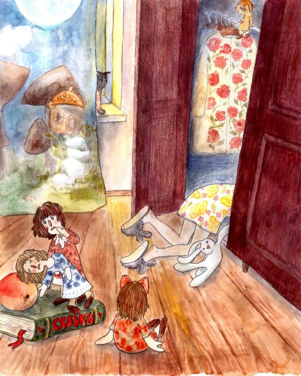 — Всё очень просто, хозяюшка: ты случайно нашла лаз в мою страну. В страну тряпичных кукол. В вашем мире мы игрушки, а в своём мире мы настоящие и всё можем. И разговариваем, и бегаем, и едим — всё как у вас. Только сны мы не видим. Но зато приходим во снах к вам. Всё остальное такое же. Такое же небо, такие же звёзды и галактики. ВСЕЛЕННАЯ В КОРОБКЕ С ЛОСКУТКАМИ. Видимо, портал, соединяющий наши миры, недостаточно хорошо спрятали. И вот именно тебе удалось раскрыть нашу тайну.