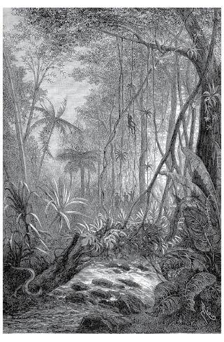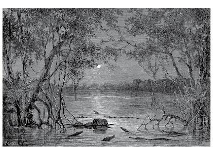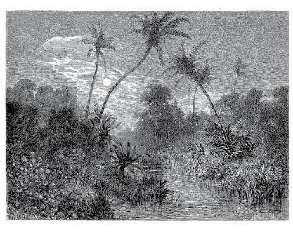 Тяжелые испарения, поднятые беспощадным солнцем со дна бесконечных болот и из глубин непролазных чащоб, превращались в настоящие смерчи. То, что в Европе называют струями дождя, здесь напоминало сплошные потоки расплавленного металла, с мелькающими сквозь них проблесками молний.