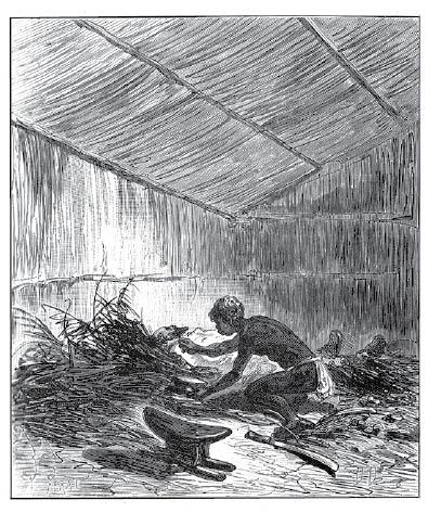 Надсмотрщик вошел первым, сжимая в руке тесак. Жалкая хижина едва освещалась несколькими тонкими лучами света, проникавшими сквозь плетеные стены.