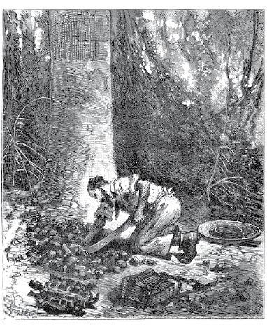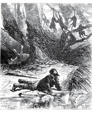 Он вернулся в хижину, где вместе с ним жили еще несколько надзирателей, собрал в ранец кое-какую провизию, взял компас, вооружился мачете, перекинул через плечо охотничье ружье и приготовился выступить.