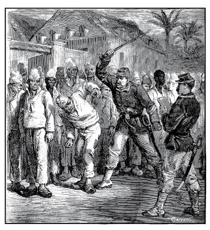 Мы использовали термин «сосланный», а не «высланный»; первым обозначают людей, осужденных по политическим делам, второй предназначен для тех, кто совершил уголовные преступления. Вот, собственно, единственная и чисто номинальная разница между этими людьми, установленная теми, кто отправил их в этот ад, и принятая среди тех, кто их охраняет. Все остальное было совершенно одинаковым: каторжный труд, пища, одежда и условия содержания. И сосланные, и высланные, смешавшиеся в жуткой тесноте, всего получали поровну, вплоть до щедрых ударов дубинки надзирателя Бенуа, имя которого, как мы уже убедились, ни в коей мере не соответствовало его нраву [16].