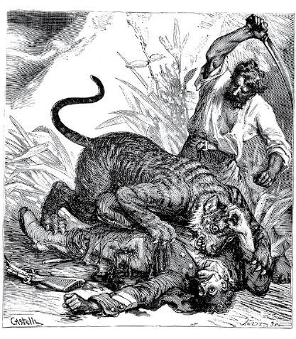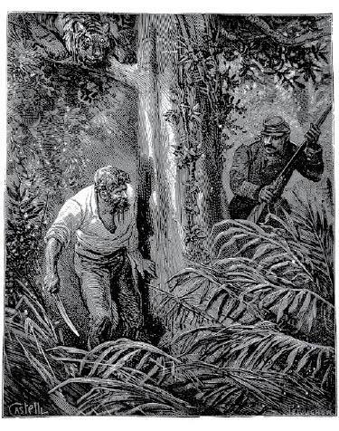 Буря у экватора. — Перекличка каторжников. — Излишнее рвение. — К оружию! — Побег. — Голод — не тетка. — Охотники на людей. — Не все каторжники одинаковы. — Собаки каторги и свободные псы. — Ночь в девственном лесу. — Добыча и тень. — Тигр пятнистый и тигр белый. — Неудачный выстрел, но превосходный сабельный удар. — Месть благородного сердца. — Прощение. — Свободен!..