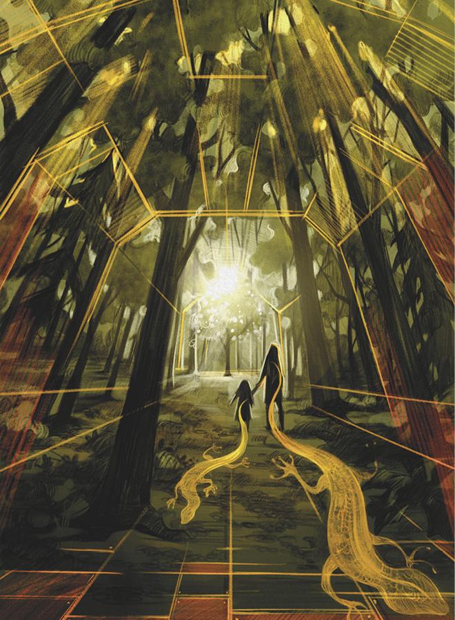Никола стоял за их спинами и видел, как в каштановых прядях брата и сестры проявлялся медный отлив. Лавр с Элоизой, смеясь, повернулись, и Никола различил в карих глазах новые золотистые искорки и переливчатый блеск в чешуе. Лавр и Элоиза впитывали Лес, наполнялись им до краев, отражали собой его степенную осеннюю красоту. Казалось, постой вот так подольше — и не заметишь, что перед тобой уже машут хвостами две изящные остроносые ящерки, пригретые полуденным солнцем. «Мы — Лес, он — мы», — сказал как-то Лавр очень серьезно. О таких вещах иномирцы не шутили.