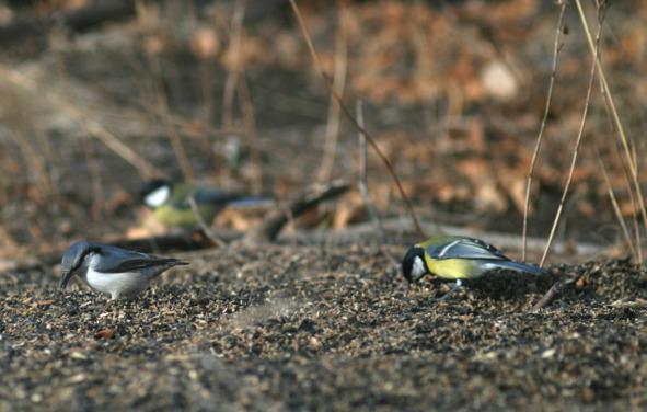 На ворох семечек слетелись синицы и поползни. Они осенью всегда держатся вместе, наверное, один и тот же стол, одинаковые предпочтения в питании. Дней десять назад такой же весёлый ажиотаж творился прямо в городе, на улице Аксакова — тоже какой-то тайный любитель птиц выбросил за забор плохо вышелушенные шляпки подсолнухов. И птицы пировали!