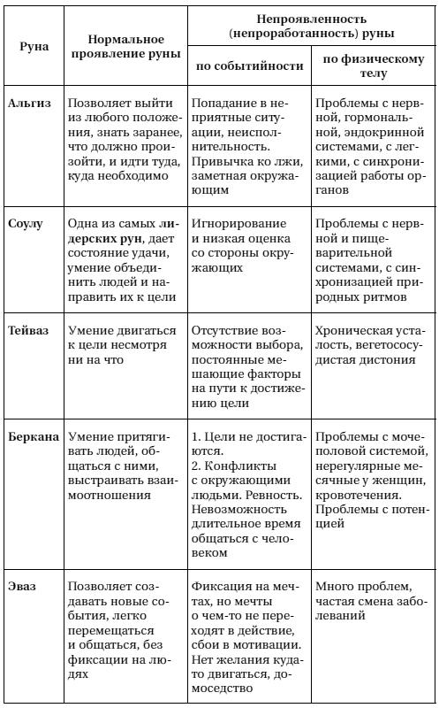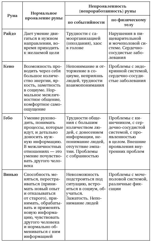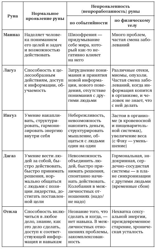 Итак, в идеале человек должен нормально проводить через себя энергии всех 24 рун. К этому надо стремиться, так как непроработанность той или иной руны привносит в жизнь человека разные проблемы.
