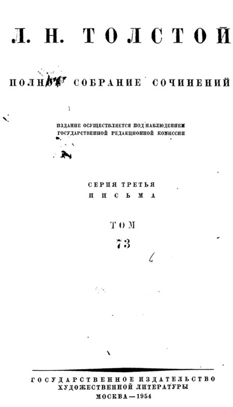 Полного собрания сочинений Л. Н. Толстого, предоставленной