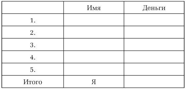 Впишите в табл. 2.1 имена четырех людей (за исключением несовершеннолетних детей), с которыми вы чаще всего общаетесь: друзей, родственников, коллег или партнеров по бизнесу. В пятой строке укажите круг, в котором вы преимущественно вращаетесь: покупатели, продавцы, работодатели, больные, пенсионеры, спортсмены. В графе «Деньги» отметьте, сколько эти люди приблизительно зарабатывают в месяц. Теперь подсчитайте среднее арифметическое число и впишите его в графу «Деньги» напротив пункта «Я». Должна получиться сумма, которая составляет ваш месячный доход. Интересно, почему так?