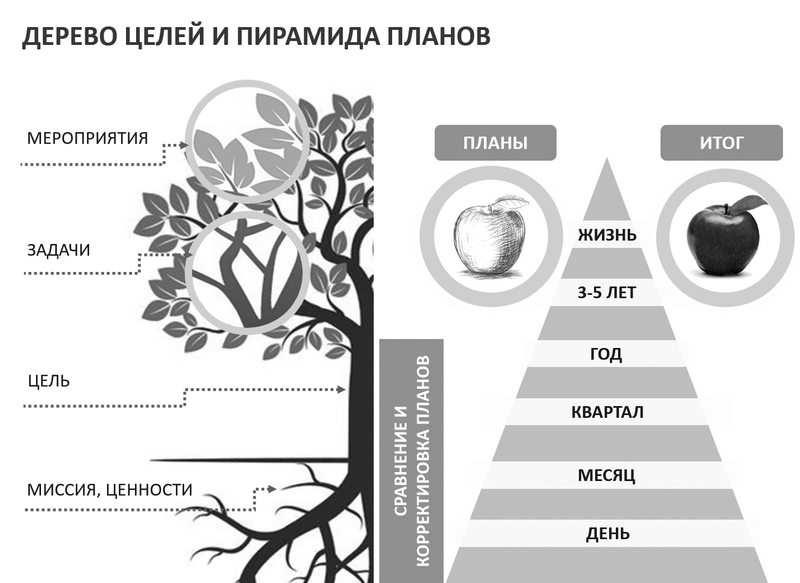 Круг целей, Дерево целей, Пирамида планов