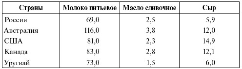 Потребление молочных продуктов в некоторых странах мира в 2009 г. (кг/чел. в год)