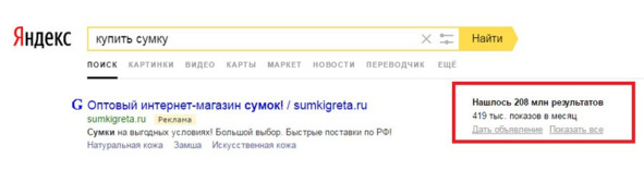 Чтобы узнать частоту запроса в месяц, воспользуемся сервисом подбора ключевых запросов Wordstat Yandex.