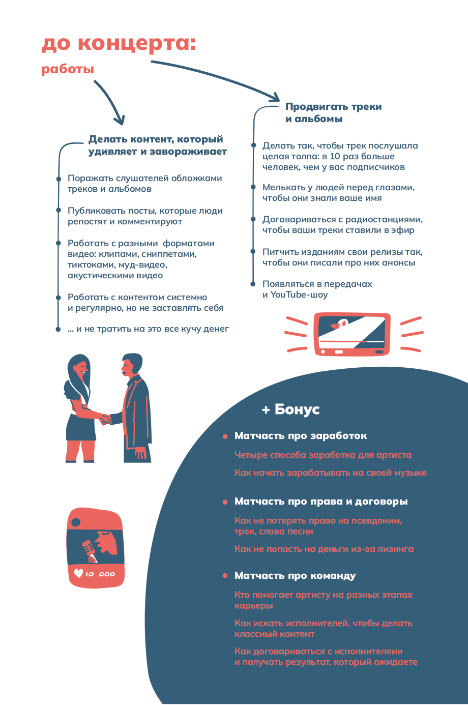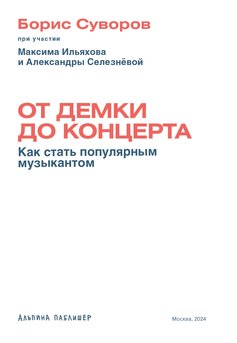 В этой книге вас ждут не только прикладные советы, но и наши размышления о профессиональном пути артиста и о сомнениях, которые с ним связаны. Мы понимаем, как непросто строить карьеру музыканта: ты почти как предприниматель, только успех в творчестве еще сложнее оценить в цифрах.