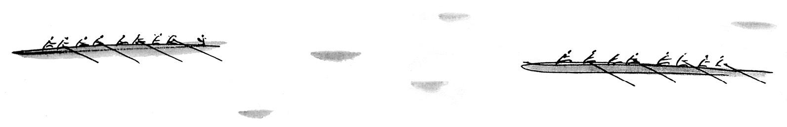 Ещё мгновение назад ничего не было, ещё только что все галдели, переговаривались, поглядывали на часы, на небо и на флаг, смотрели на противоположный берег и на лодки второго заезда, которые медленно сносило течением к мосту – лопасти на воде, а сама вода, как стекло, как зеркало, синяя вода, словно отглаженная утюгом – ни морщинки, ни складки, только у деревянных быков, у самых пролётов завихряется, журчит и плещет. Всё это было ещё секунду назад. Секунду, когда можно было думать, особенно со стороны, что всё это – на воде и на трибунах – просто так: просто осень, просто прекрасный день и обыкновенная тренировка, и сейчас они начнут, как вчера и позавчера, пошучивая и посмеиваясь, выносить свои вёсла и укладывать их лопастями вверх... Но после того, как это слово было произнесено, ничего уже изменить было нельзя, все пути назад были отрезаны.