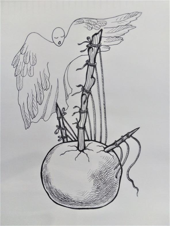 Птицы спускаются с самого неба и разговаривают с детьми в круглых домах. Они белые или голубые, иногда их оперенье меняет цвет и становится то золотым, то белым. Они умеют говорить голосами людей, а их лицо всё время двигается и трудно рассмотреть, какое оно. Кажется, оно похоже на лицо какого-то ребенка. Вот клюва как у синицы или сороки на этом лице точно нет.
