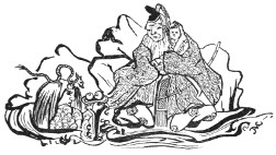 In almost every home are Japanese fans, in our shops Japanese dolls and balls and other knick-knacks, on our writing-tables bronze crabs or lacquered pen-tray with outlined on it the extinct volcano [Fuji San][1] that is the most striking mountain seen from the capital of Japan. At many places of amusement Japanese houses of real size have been exhibited, and the jargon of fashion for "Japanese Art" even reaches our children's ears.