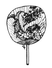 Yet all these things seem dull and lifeless when thus severed from the quaint cheeriness of their true home. To those familiar with Japan, that bamboo fan-handle recalls its graceful grassy tree, the thousand and one daily purposes for which bamboo wood serves. We see the open shop where squat the brown-faced artisans cleverly dividing into those slender divisions the fan-handle, the wood-block engraver's where some dozen men sit patiently chipping at their cherry-wood blocks, and the printer's where the coloring arrangements seem so simple to those used to western machinery, but where the colors are so rich and true. We see the picture stuck on the fan frame with starch paste, and drying in the brilliant summer sunlight. The designs recall vividly the life around, whether that life be the stage, the home, insects, birds, or flowers. We think of halts at wayside inns, when bowing tea-house girls at once proffer these fans to hot and tired guests.