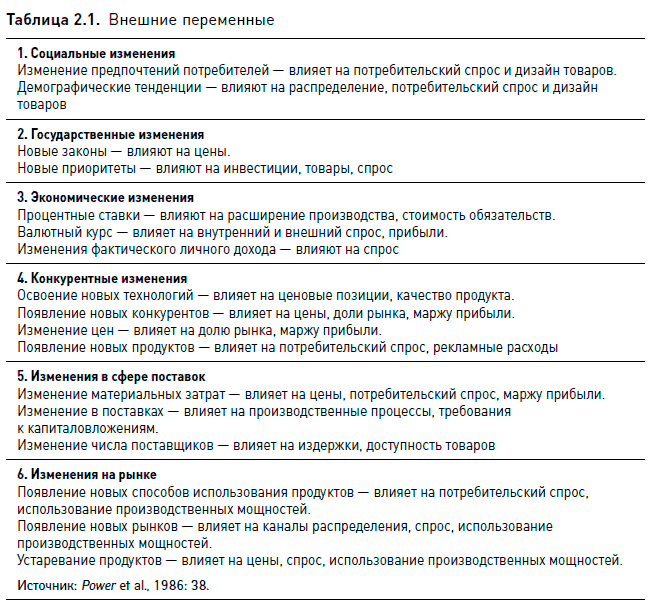 Что касается внешней оценки, то помимо 12-страничной вставки из работы М. Портера (Porter, 1980, принадлежащей к школе позиционирования), в этом издании восемь страниц посвящено технологическим, экономическим, социальным и политическим аспектам внешней среды компании и кратко обсуждаются проблемы прогнозирования, поиска и анализа данных. К. Эндрюс завершает свои рассуждения вопросами «Какова основная структура отрасли, в которой действует фирма?» и «В чем состоит влияние прогнозируемых изменений социального, политического и макроэкономического контекстов на отрасль или фирму?».