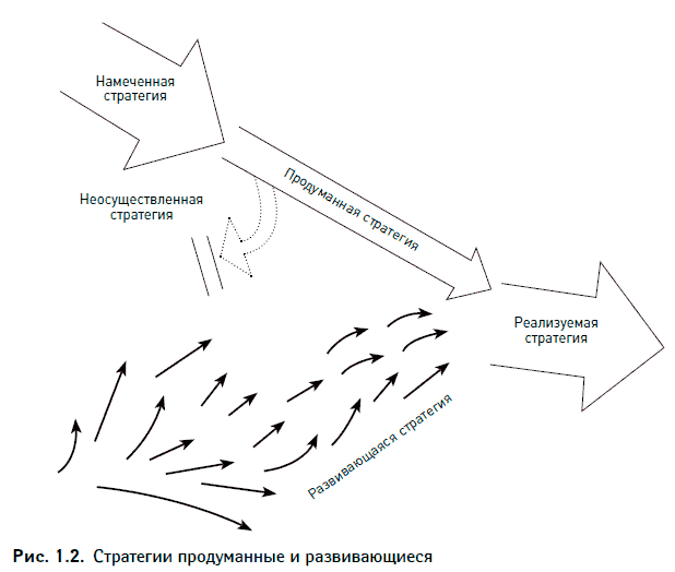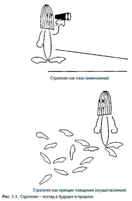 Попросите кого-нибудь объяснить, что такое стратегия, и почти наверняка услышите в ответ, что стратегия есть план, или нечто в этом роде — руководство, ориентир или направление развития, дорога из настоящего в будущее. Затем попросите того же человека описать стратегию, которой последние пять лет фактически придерживается его (ее) организация или основной конкурент, — не декларируемые стратегические принципы, а реальное поведение. Большинство людей охотно ответят на ваш вопрос, совершенно не обращая внимания на тот факт, что их ответ существенно отличается от данного ими определения стратегии.