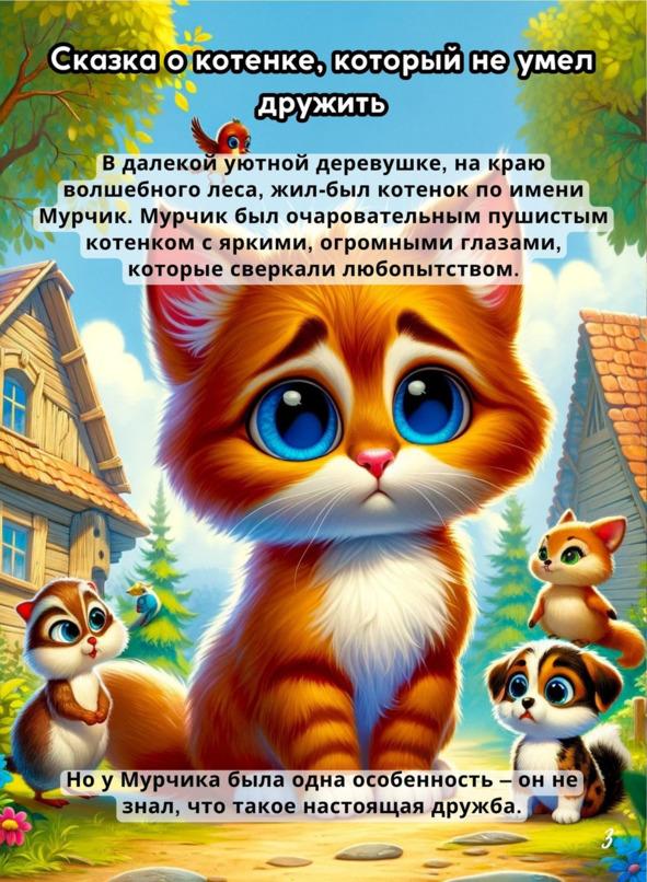 «Поучительные приключения Мурчика» — это увлекательная и поучительная серия рассказов, созданная для маленьких читателей. Вместе с очаровательным героем Мурчиком дети отправятся в увлекательное путешествие по уютной деревне, расположенной на краю леса. Каждая глава раскрывает новую тему и преподносит важные жизненные уроки о дружбе, честности, доброте, заботе о природе и многом другом. Вместе с Мурчиком дети будут погружаться в мир эмоций, понимания и взаимопомощи, учась ценить дружбу.