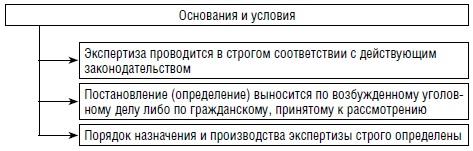 Схема 7. Основания и условия назначения и производства экспертизы [93]