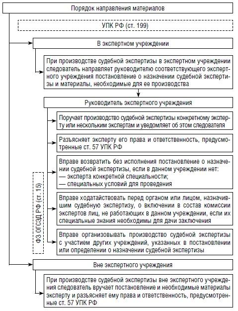 Схема 9. Порядок направления материалов уголовного дела для производства судебной экспертизы (ст. 199 УПК РФ)
