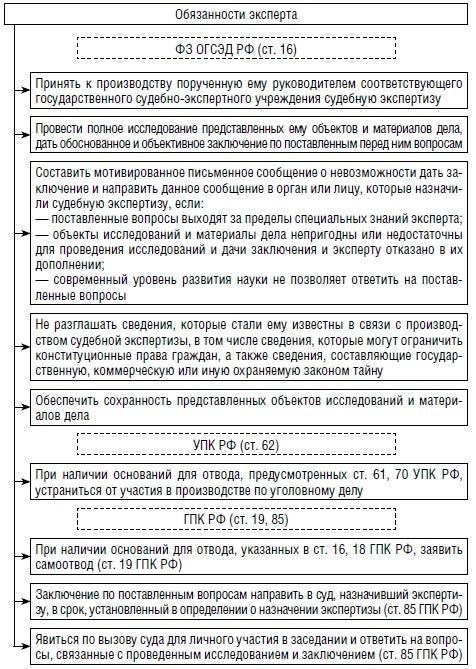 Схема 15. Обязанности эксперта (ст. 16 ФЗ ОГСЭД РФ; ст. 62 УПК РФ; ст. 85 ГПК РФ)