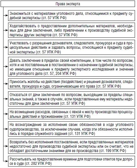 Схема 17 (продолжение). Специальные процессуальные права эксперта (ст. 57, 131, 199, 204, 282 УПК РФ)
