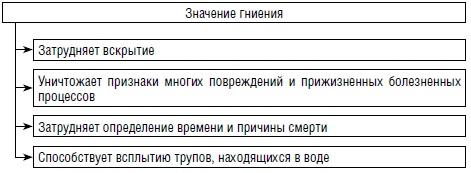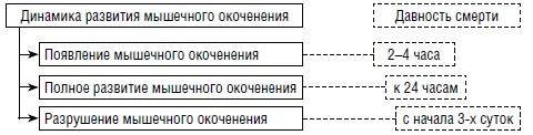 Рис. 13. Изменения, происходящие в трупе в зависимости от давности наступления смерти [131]