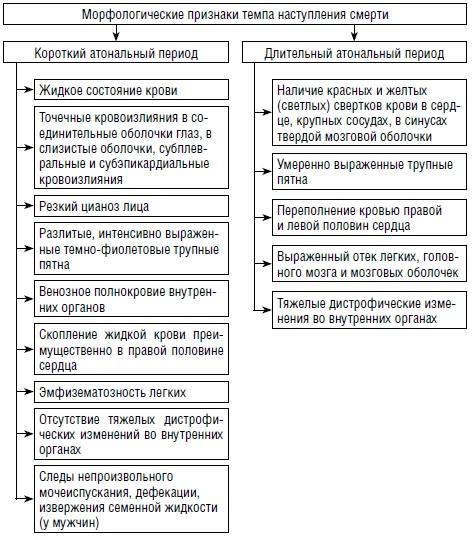 Схема 39. Морфологические признаки темпа наступления смерти [30]