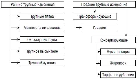 Трупные изменения — совокупное название морфологических, биохимических, биофизических и т.п. изменений, происходящих в теле после наступления биологической смерти (схемы 43–45, рис. 5–12).