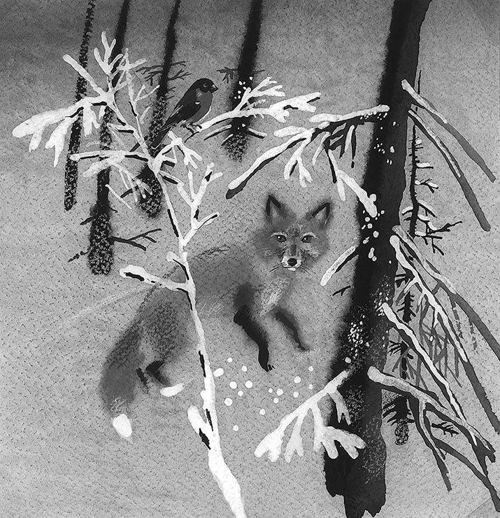 Ходит лиса тихохонько, к земле пригибается, будто кланяется; свой пушистый хвост носит бережно, смотрит ласково, улыбается, зубки белые показывает.