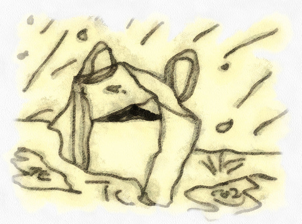 Дождь бил по коробке, из которой доносились подозрительные звуки. Редкие прохожие обходили коробку с громогласным лозунгом очистить весь воздух. Те лужи, которые собирались вокруг коробки были покрыты подозрительными маслянистыми разводами.