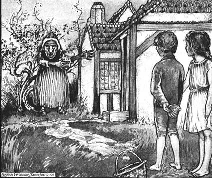 Little Red Riding-Hood. No, Mr. Wolf, only about half a mile. You go down this path to the mill and then turn to the right, and the first house you come to is my grandmother's. It's a little red house.