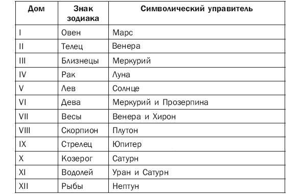 «Каждый астрологический дом в натальной карте имеет своего реального и символического управителя — Планету. Символический управитель — это хозяин того знака Зодиака, которому данный дом соответствует по номеру своей категории от 1-й — Овен до 12-й — Рыбы. Реальный управитель дома — это управитель того знака, в который попадает куспид данного дома (начало дома). Очень часто бывает, что у дома есть еще и соуправитель. Это хозяин знака, который полностью или частично находится в доме (после знака управителя). Иногда бывает, что дом такой большой, что в нем оказывается и три знака. В этом случае мы имеем дело со вторым соуправителем дома или младшим соуправителем.