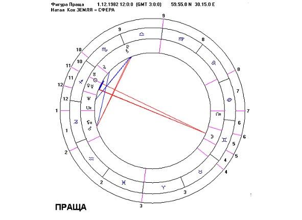 И рисунок этот называется Праща. Тот случай, когда одна планета находится напротив связки остальных планет. Пример такого рисунка приведен ниже.
