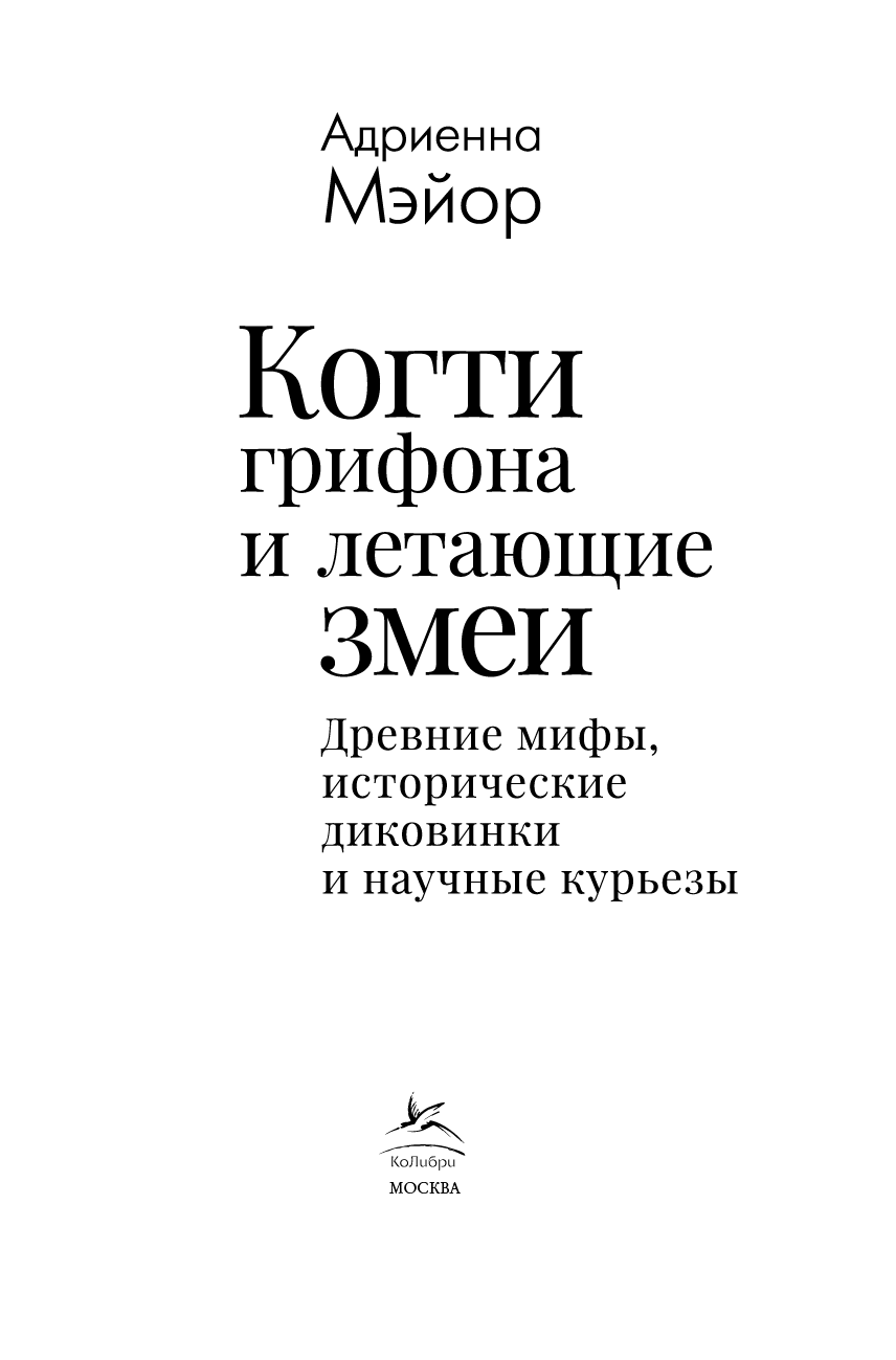 Когти грифона и летающие змеи : Древние мифы, исторические диковинки и научные курьезы / Адриенна Мэйор ; [пер. с английского В. В. Степановой]. — М . : КоЛибри, Азбука-Аттикус, 2024. — ил.
