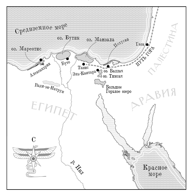 По крайней мере, мы можем точно установить, откуда Геродот направился к перевалу. Буто (современный Тель-эль-Фарейн, Холм фараонов) в древности был крупным городом на южном берегу мелкого солончакового озера Бутик, примерно в 96 километрах к востоку от Александрии [5], недалеко от края Аравийской пустыни на Синайском полуострове. Сегодняшняя лагуна Буруллус — все, что осталось от озера Бутик. В древности словом «Буто» также называли более обширную область вокруг одноименного города. В древнеримскую эпоху Буто был оккупирован. Сейчас руины города и королевского дворца, осколки керамики, статуй и других артефактов лежат на берегах высохшего озера.
