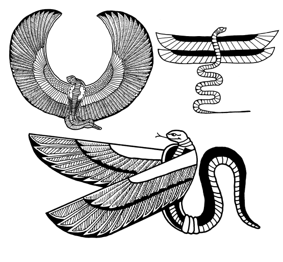 Урей — изображение поднявшейся на хвост кобры с двумя, иногда четырьмя крыльями — пользовался в Египте большой популярностью. Но этот мотив также встречается в бронзовом веке на Ближнем Востоке. Изображения змей с четырьмя крыльями нередко находят на печатях VIII века до н. э. из Иудеи. Принимая оборонительную позу, кобры раздвигают шейные ребра, что, возможно, и породило идею о крыльях. Герпетологи отмечают, что обитающая в Египте и Аравии рогатая гадюка (Cerastes cerastes) при нападении иногда подбрасывает себя в воздух. Страбон также упоминал, что темно-красные ядовитые змеи (идентифицированные как песчаные или пестрые эфы и обитающие в Южной Аравии, где добывают ладан) при нападении могут довольно высоко подпрыгивать над землей. Возможно, именно такое поведение дало начало рассказам о «перемещающихся по воздуху» змеях. Несложно представить, каким образом египетские и ближневосточные изображения кобр с крыльями, соединившись с вполне реальной опасностью, которую представляли смертоносные змеи, могли породить представления о «летающих змеях».