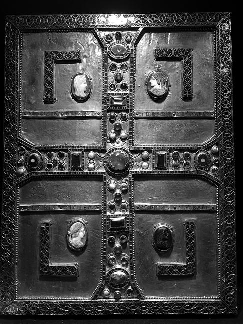 РИС. 1. ОКЛАД «ЕВАНГЕЛИЯ КОРОЛЕВЫ ТЕОДЕЛИНДЫ». Рим. Около 600 г. Позолота, выемчатая эмаль, камеи, драгоценные камни. Монца, сокровищница. Фото О. С. Воскобойникова