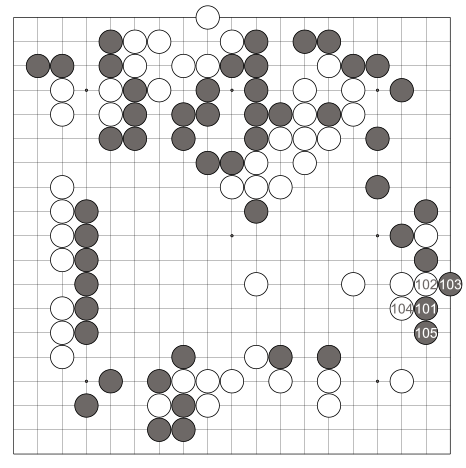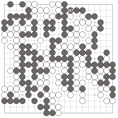 Обычно в партиях го высокого ранга игрокам на обдумывание ходов отводят по десять часов, однако здесь время было увеличено в четыре раза – до сорока. И тем не менее, потратив тридцать четыре часа, черные поставили рекорд. Такое вряд ли случалось за все время существования регламента времени в го.