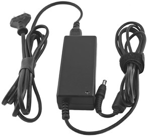 Не менее важны и нужны при работе с переносным компьютером разнообразные порты и разъемы. И, пожалуй, самый значимый из них — разъем для подключения кабеля питания. Ноутбук, в отличие от стационарного компьютера, может работать без подключения к электросети, от встроенной батареи. Однако батарею ноутбука периодически нужно подзаряжать. Для этого в комплекте с портативным компьютером идет кабель питания (рис. 1.7). Одна часть кабеля подсоединяется к ноутбуку, а вторая вставляется в обычную розетку. Возьмите кабель питания и поищите на корпусе ноутбука подходящий к нему разъем (в различных моделях он находится с разных сторон). Подходящий разъем будет только один, поэтому вы не ошибетесь.